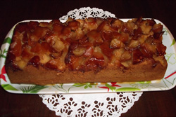 Éplucher les pommes et les couper en cubes, mettre 20 gr de beurre à fondre dans une poêle et y ajouter les cubes de pommes après 5 minutes y ajouter la cannelle, le miel et 50 gr de sucre roux. Laisser les pommes caraméliser puis verser le tout dans un moule à cake. Préchauffer le four thermostat 180°C.