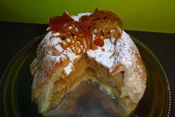 Dans un four préchauffé à 170°C, enfourner le gâteau aux pommes pour 30 minutes puis prolonger la cuisson de 45 minutes en ayant pris soin de recouvrir la charlotte d’une feuille de papier aluminium. Laisser tiédir avant de démouler.