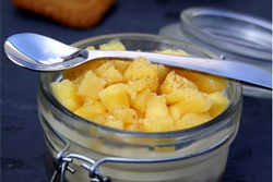 Verser la crème dans les verrines puis déposer les dès de pommes, saupoudrer éventuellement de cannelle en poudre pour terminer le tiramisu aux pommes. Réserver ce dessert aux pommes au réfrigérateur minimum 5h avant dégustation.