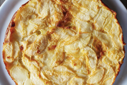Diviser la pâte en deux et placer les deux morceaux dans deux saladiers. Peler et épépiner pommes et poires. Les couper très finement à la mandoline. Mettre les pommes dans le premier saladier, les poires dans l’autre et bien mélanger pour qu’elles s’imbibent de l’appareil.