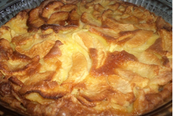 Beurrer le moule à gâteau et déposer les pommes au fond de celui-ci, recouvrir de la préparation.