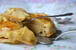 Enfourner à 130° C. pour 45 minutes. La crème doit être bien prise. Démouler de suite sur une assiette de présentation. Servir légèrement tiède avec, par exemple, une boule de glace à la vanille.