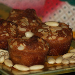 Mettez la pâte dans les moules individuels, puis ajoutez les pommes dans chaque moule. Saupoudrez d’amandes effilées.