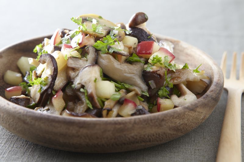 Servir aussitôt la poêlée, accompagnée du mesclun assaisonné d’huile d’olive et de vinaigre balsamique.