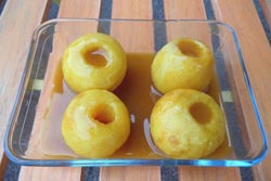 Verser ce caramel au centre de chaque pomme et napper les pommes.