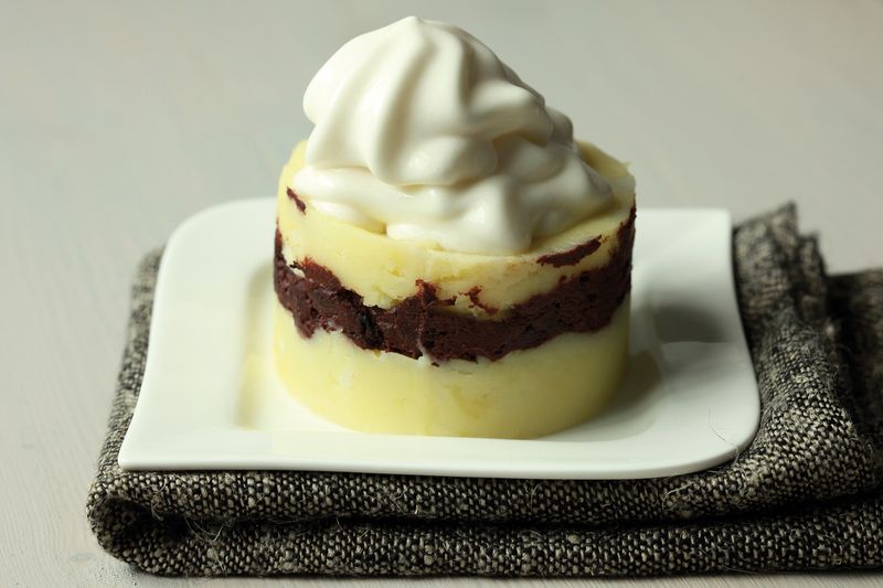 Éplucher les pommes de terre et les couper en petits cubes, puis les cuire dans une casserole d’eau salée pendant 10 min. Les égoutter et les passer au presse-purée, ajouter le beurre puis le lait. Rectifier l’assaisonnement.
