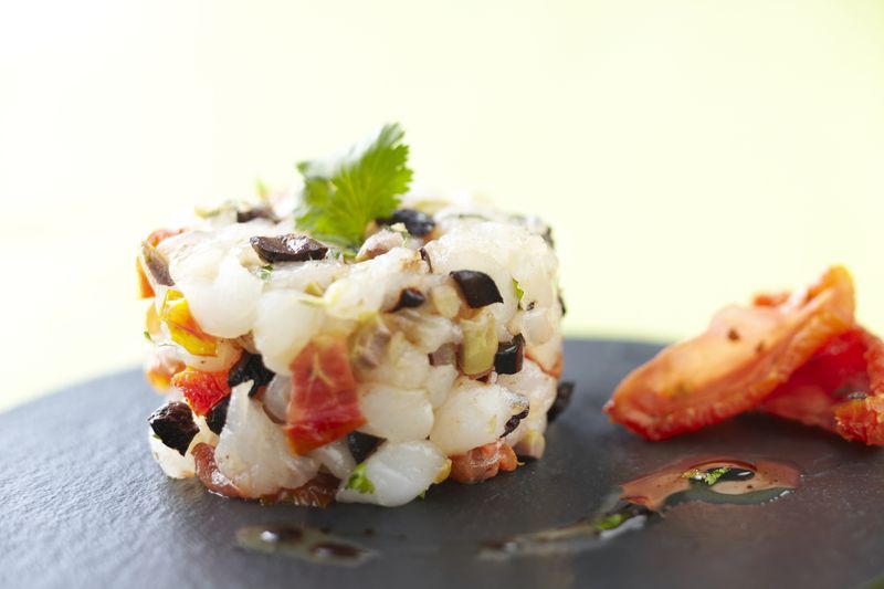 Désarêter les filets de daurade et retirer la peau. Couper ensuite la chair du poisson en petits dés.
