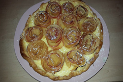 Enrouler pour faire une jolie rose et disposer les roses sur la crème pâtissière.