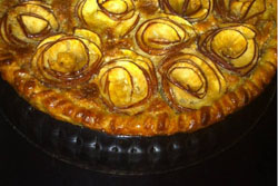 Mettre la pâte dans un plat à tarte, y verser la compote.Laver les pommes et les couper avec un économe de façon à garder la pomme entière version épluchée.Dresser les pommes de façon à faire des roses.Faire cuire 30 minutes au four à 180 degrés.