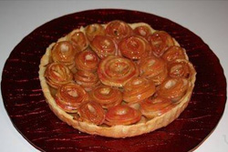 A l’aide d’un économe peler les pommes et faites ainsi pour toute la pomme(le mieux serait d’obtenir un serpentin de pommes) de façon à former des boutons de roses avec les lamelles.