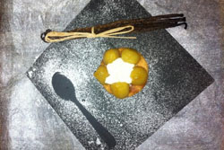 Disposer les pommes sur la pâte sortie du four, monter la chantilly en y ajoutant de l’extrait de vanille, la disposer au centre avec une poche.
